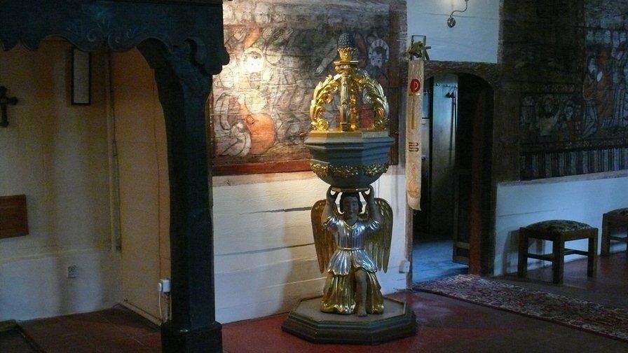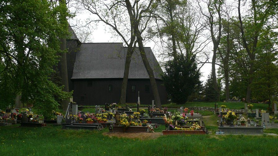 Beginnen wir mit Aufnahmen der Schrotholzkirche in Bankau, einige Innenaufnahmen mit Triptychon-Altar, Taufengel und Orgel sowie Wandmalereien ergänzen diesen Abschnitt.